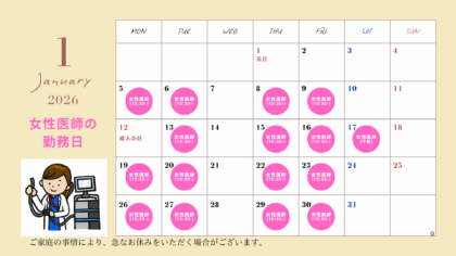 1月の女性医師による内視鏡検査・診察日です。